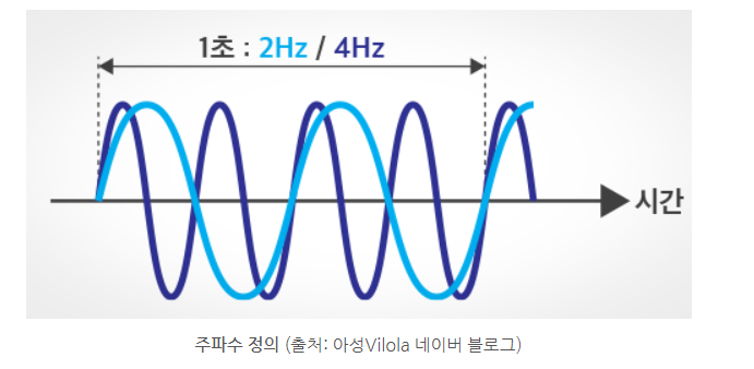 아래 그림에서 하늘색은 1초 동안 2번 진동했고 진청색은 1초 동안 4번 진행했습니다.