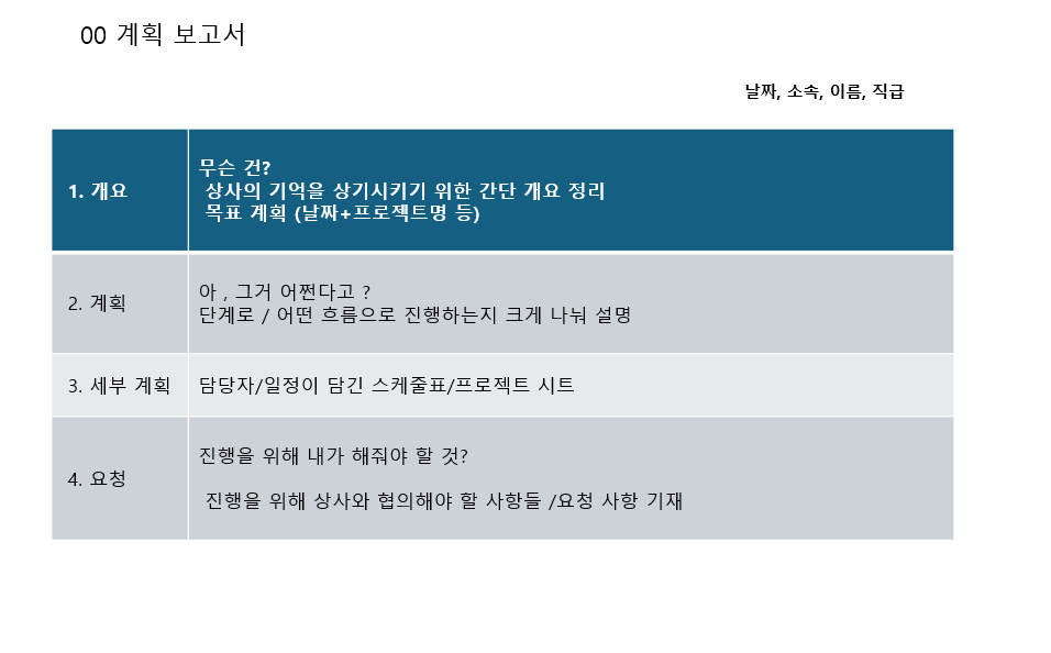 - 보고서를 누구에게 공유할 것인지(경영진, 팀원, 외부기관 등) 대상도 고려해야 해.