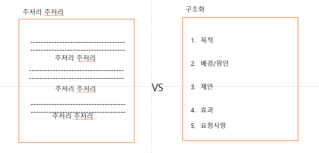 핵심이 뭐야 ? = [ 문제의 핵심 + 제안의 핵심 ] + 결론부터 짧게