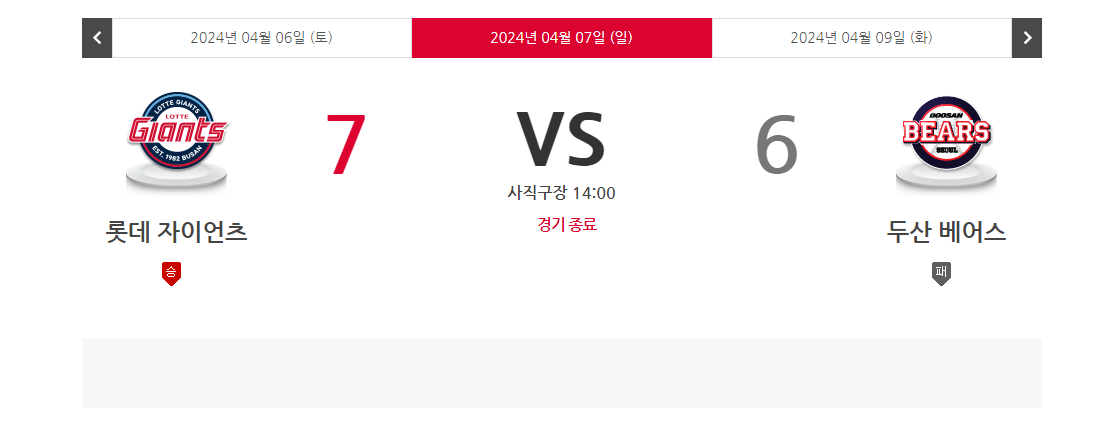 2024년 4월 7일 롯데 두산 경기 결과 정리
