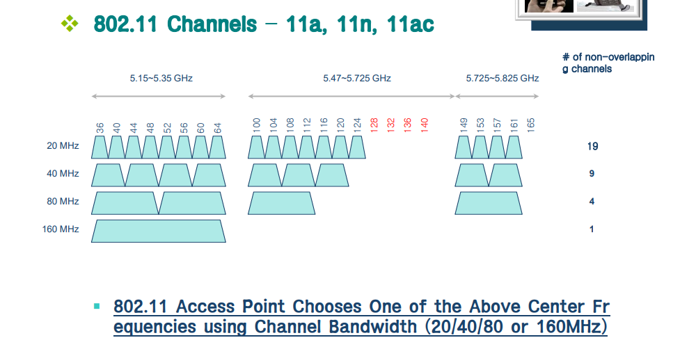 .. 例) 36번 채널 중심 주파수 : 5000 + 36 x 5 = 5180 MHz